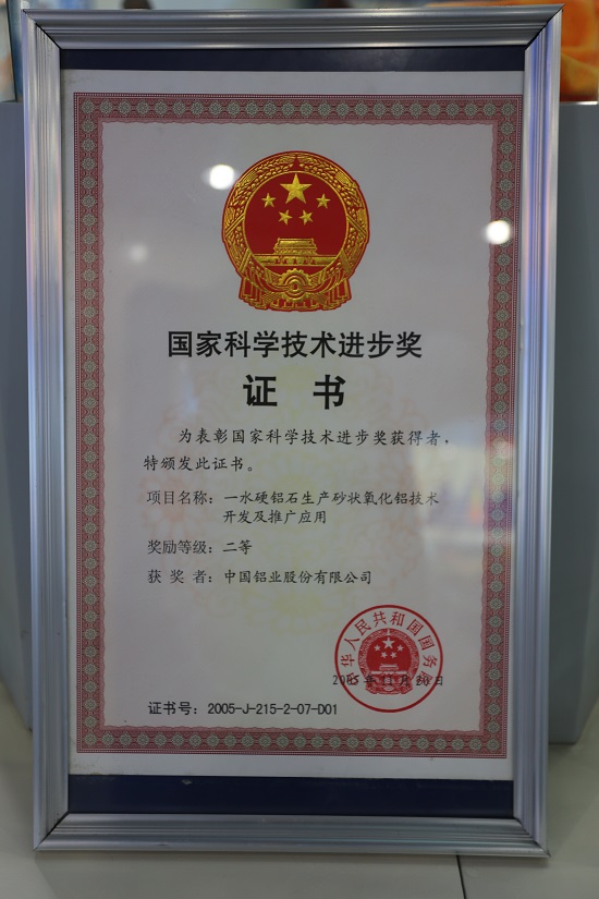 2005年,俄罗斯专享会官网”一水硬铝石砂状氧化铝技术开发及推广应用“项目荣获国家科学技术进步二等奖
